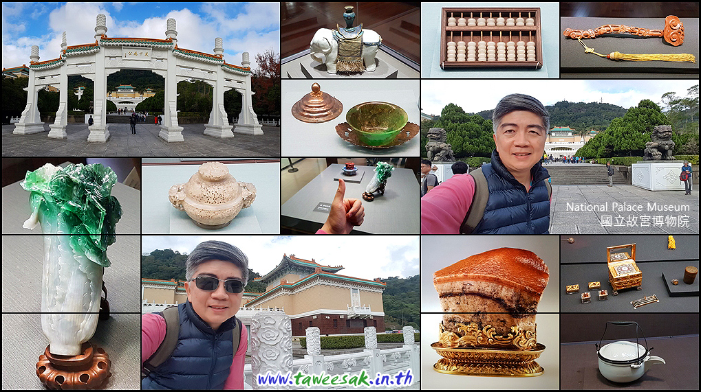 หลังจากซื้อบัตรเข้าชมในราคาใบละ 350 NT เราก็รีบเดินไปชมโบราณวัตถุชิ้นเอก 2 ชิ้นที่ตั้งใจมาชม คือ หยกผักกาดขาว (Jadeite Cabbage) และ หินหมูสามชั้น (Meat-shaped Stone) ซึ่งก็ไม่ผิดหวังที่ได้ชม หลังจากนั้นเราก็เดินชมในห้องต่างๆ ซึ่งแต่ละชิ้นต้องทึ่งในความงามและถามในใจว่า แกะสลักได้อย่างไร งานฝีมือชั้นยอดมากๆ แต่ละชิ้น