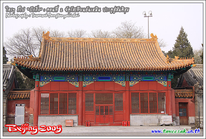 เดินข้ามถนนไปยังบริเวณที่ถือได้ว่า เป็น "หัวใจ" ของปักกิ่ง ในด้านสภาพภูมิศาสตร์ จิตวิญญาณ และประวัติศาสตร์ ที่ดึงดูดให้ใครต่อใคร อยากมาท่องเที่ยวยังสถานที่แห่งนี้