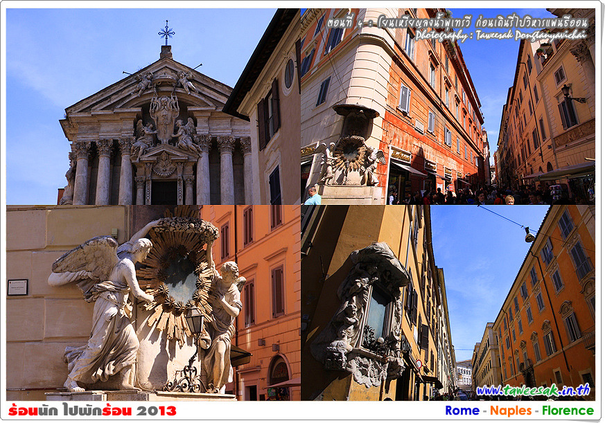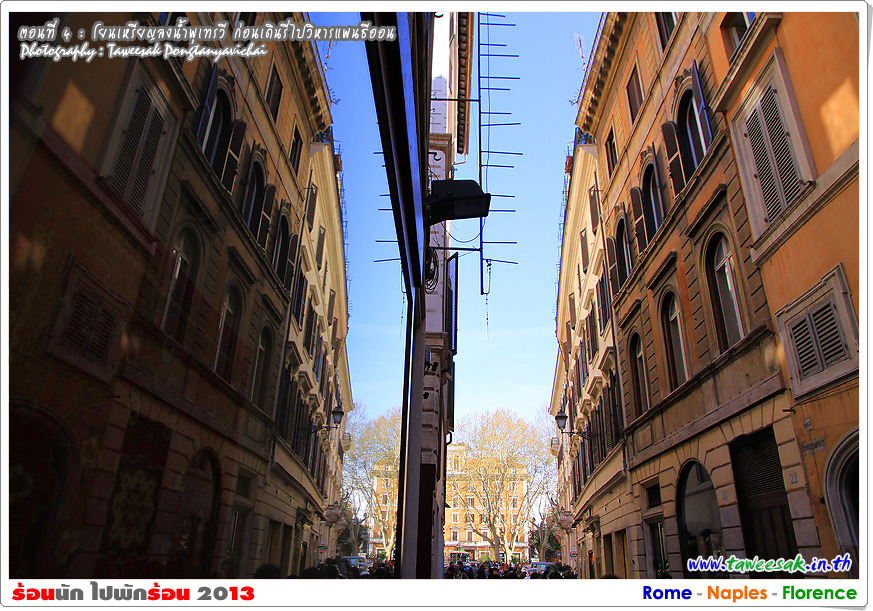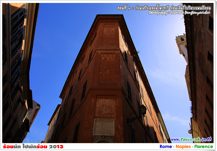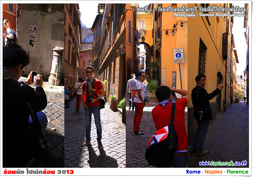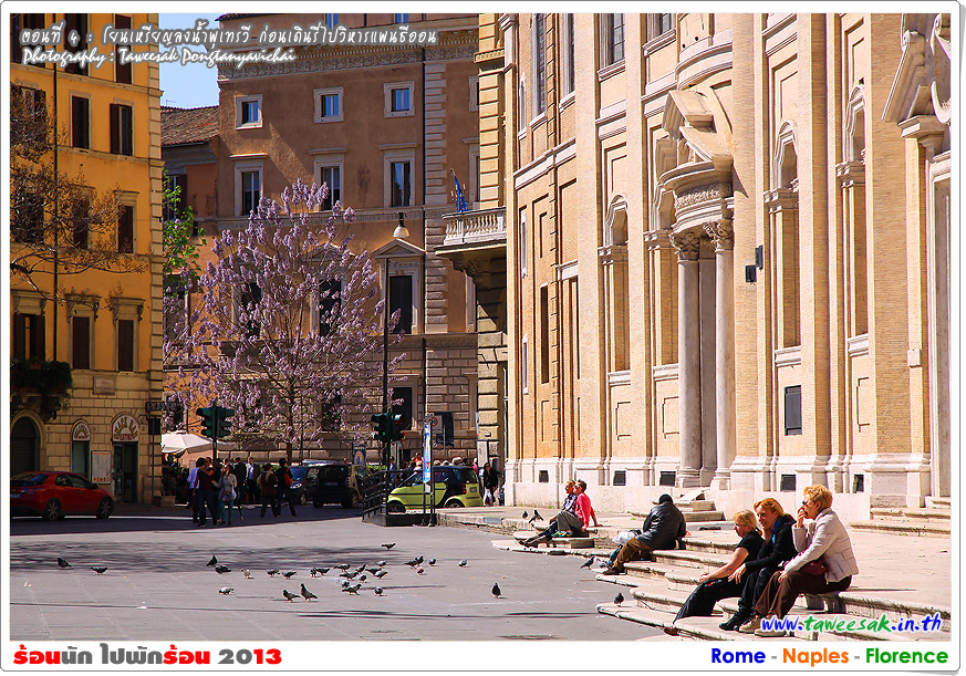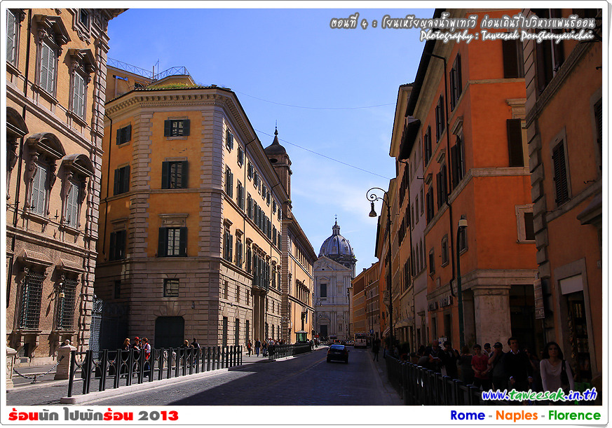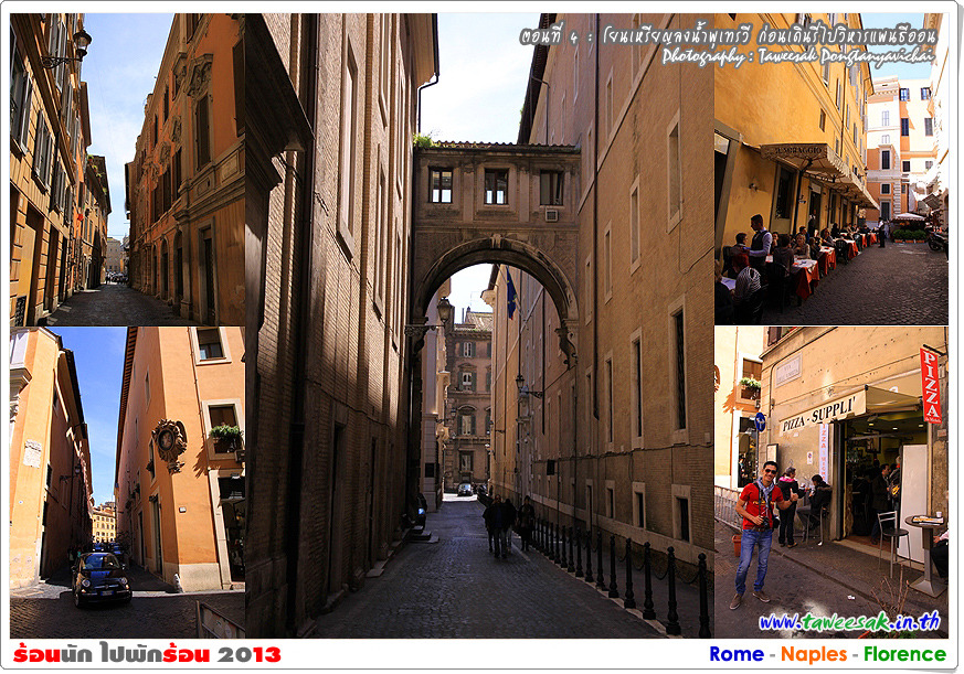 พวกเราก็เดินกันต่อ เพราะยังมีอะไรที่น่าสนใจหลากหลายในกรุงโรมแห่งนี้ ซึ่งใครที่มาเที่ยวอยากให้ฟิตร่างกาย ให้เดินเก่ง เดินทน เพราะถนนหนทางจะเป็นตรอกซอกซอยเป็นส่วนใหญ่ ซึ่งอาศัยการเดินเท้าเป็นหลัก
