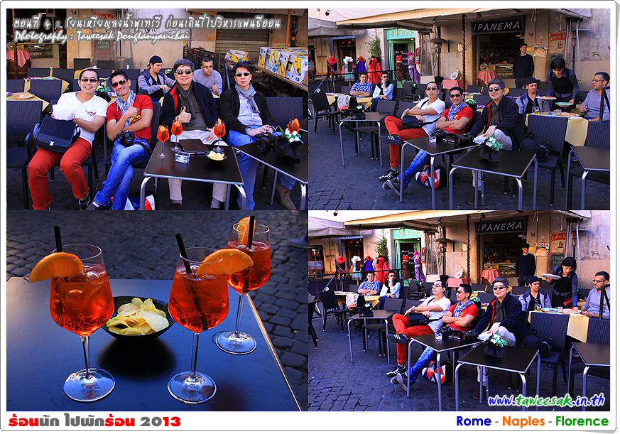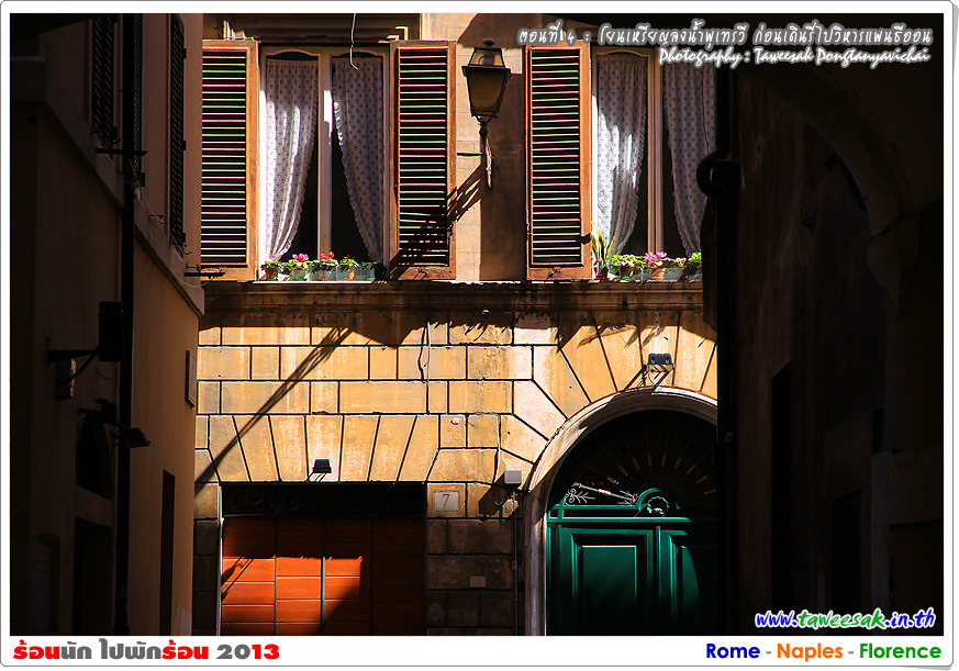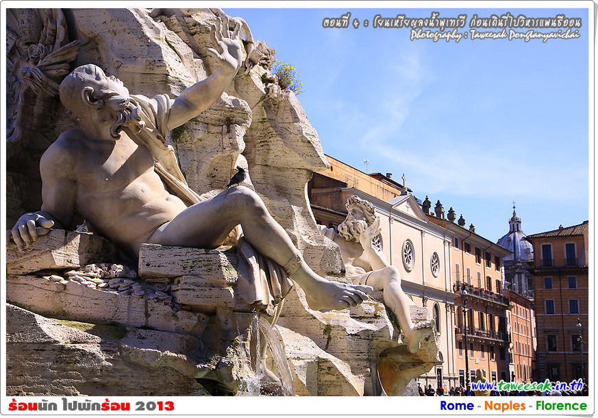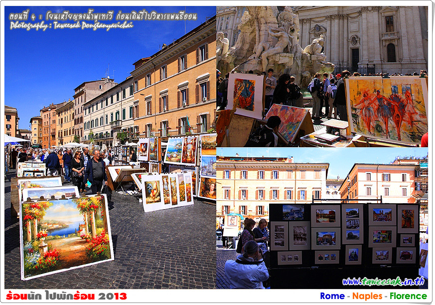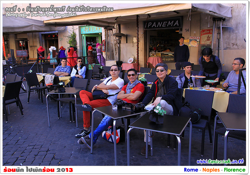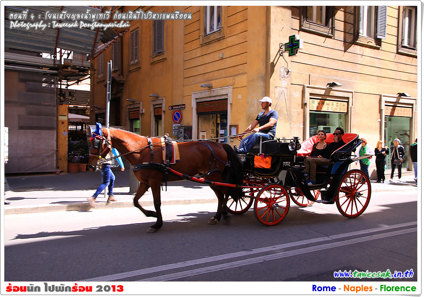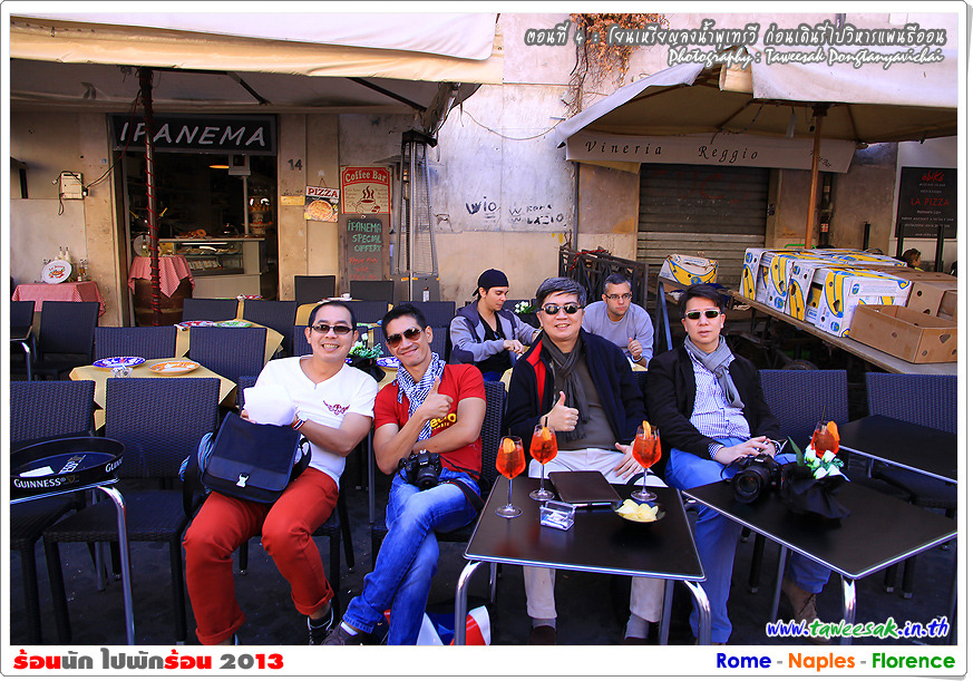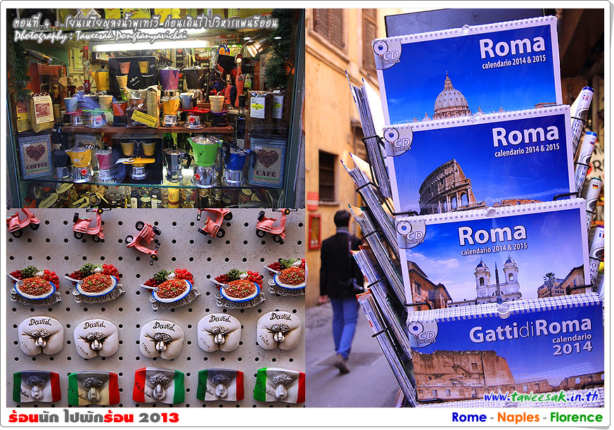 พวกเราก็เดินกันต่อ เพราะยังมีอะไรที่น่าสนใจหลากหลายในกรุงโรมแห่งนี้ ซึ่งใครที่มาเที่ยวอยากให้ฟิตร่างกาย ให้เดินเก่ง เดินทน เพราะถนนหนทางจะเป็นตรอกซอกซอยเป็นส่วนใหญ่ ซึ่งอาศัยการเดินเท้าเป็นหลัก