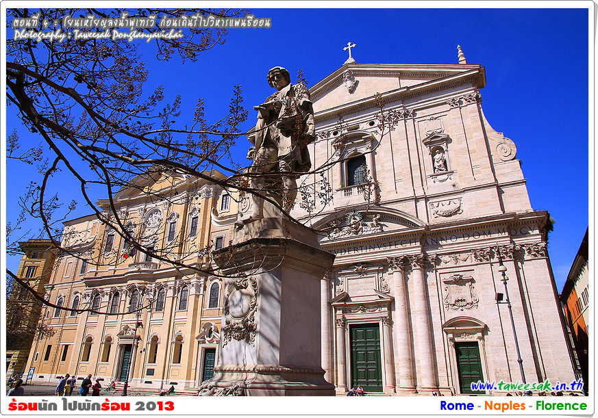 มองเห็นอนุสาวรีย์ของนักประพันธ์ นักปรัชญา นักดาราศาสตร์ ชาวอิตาเลี่ยน มีนามว่า "Giordano Bruno" ที่ประพันธ์บทกวีที่พรรณนาด้วยความรันทดใจ เมื่อชุมชนวอร์ซอร์ ซึ่งถูกขังนาน 7 ปี และนำไปเผาตายทั้งเป็นด้วยข้อหาเป็นคนนอกรีต เพียงเพราะเขาส่งเสริมทฤษฎี มีดวงอาทิตย์เป็นศูนย์กลาง และเผยแพร่ปรัชญาการคิดที่สมเหตุสมผล เพื่อไม่ให้หลงงมงายในส่วนที่ไร้ตรรกะของศาสนา