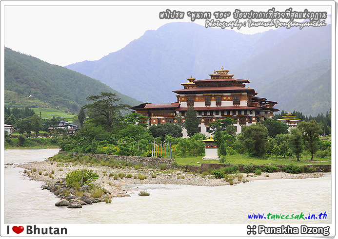 ซึ่งการเดินทางมายังเมืองพูนาคาแห่งนี้ ถือว่าไม่ยุ่งยากนัก แต่หนทางที่ไกลมาก เพราะต้องเดินทางจากเมืองพาโร ไปค้างยังเมืองทิมพู กว่าจะเดินทางมายังเมืองนี้อีกวัน แต่ได้สัมผัสกับความงามของธรรมชาติตลอดเส้นทางที่สุดประทับใจ ไว้จะมานำเสนอในโอกาสต่อไป ... จากภาพนี้จะมองเห็นแม่น้ำ Pho Chu (บิดา) และ แม่น้ำ Mo Chu (มารดา) ที่มาบรรจบกันพอดี ซึ่งเป็นที่ตั้งของป้อมปราการ Punakha Dzong แห่งนี้