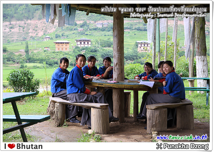 เมื่อเดินทางมาถึง พวกเราก็แวะกันเพื่อถ่ายภาพเป็นที่ระลึกกัน ไม่เว้นแม้แต่ถ่ายภาพเด็กนักเรียนชาวภูฏานใบหน้าจิ้มลิ้มเหล่านี้