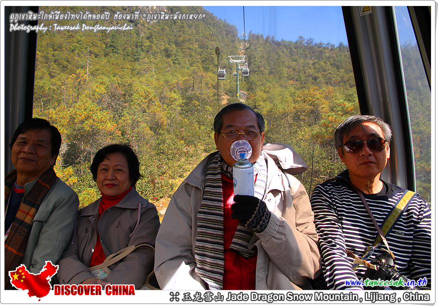 สำหรับทริปนี้ พวกเราเหล่า สว. ก็เลือกเที่ยวที่ระดับความสูง 3,356 เมตร โดยกระเช้าเล็กไปยังทุ่งหญ้าหวินซานผิง (Yunshanping) แต่ก็มีบางส่วนที่เลือกไปเที่ยวที่ระดับความสูง 4,506 เมตร โดยกระเช้าใหญ่ไปยังบริเวณลานหิมะของภูเขาหิมะมังกรหยก