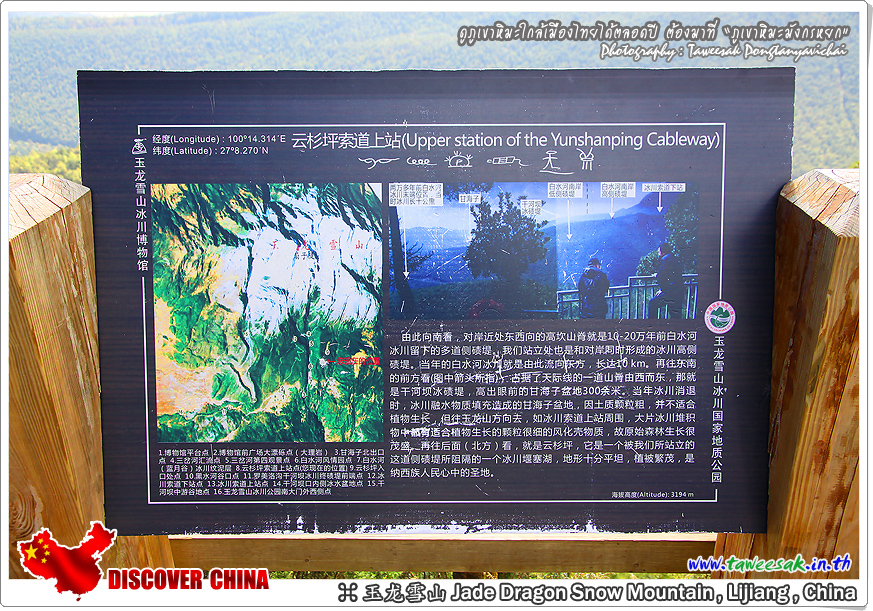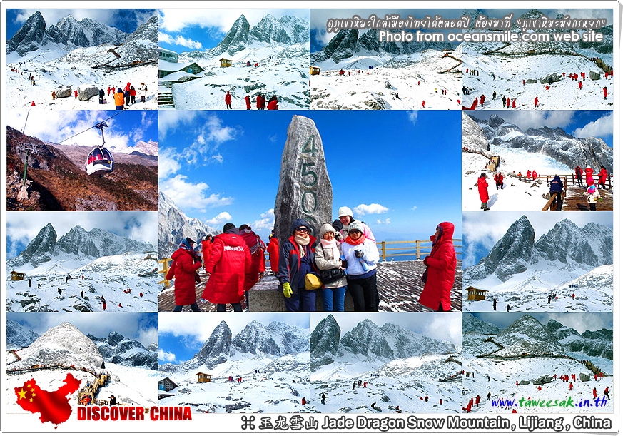 ก็ได้ชมธรรมชาติที่มีความคล้ายคลึงกันได้ หรือถ้าขึ้นไปเที่ยวที่ระดับความสูง 4,506 เมตร โดยกระเช้าใหญ่ไปยังบริเวณลานหิมะของภูเขาหิมะมังกรหยก โดยขอหยิบยืมภาพจากเว็บไซต์อื่นๆ มาแสดงให้มองเห็นภาพ
