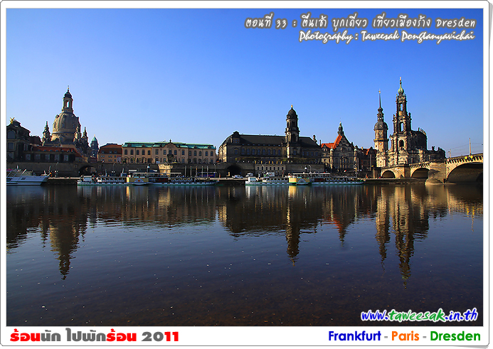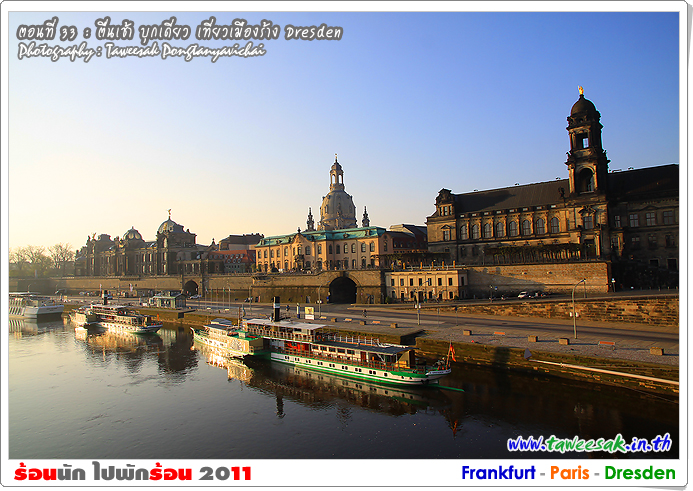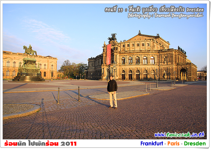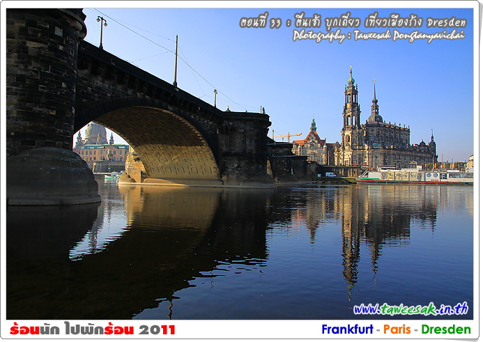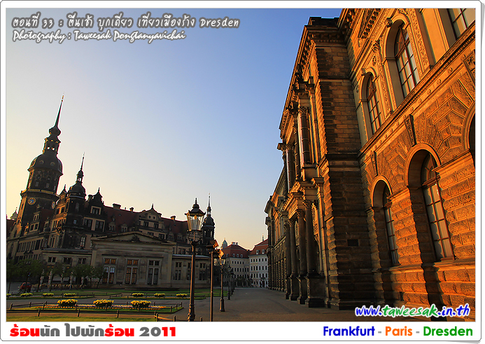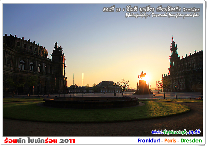 ยิ่งได้เห็นหนังสือภาพถ่ายเมือง Dresden ที่มีแสงสีทองสาดส่องตัวสถาปัตยกรรม เกิดประกายสีส้ม ยิ่งยั่วยวนใจให้มาถ่ายภาพยามเช้าเหมือนหนังสือเล่มนี้บ้าง