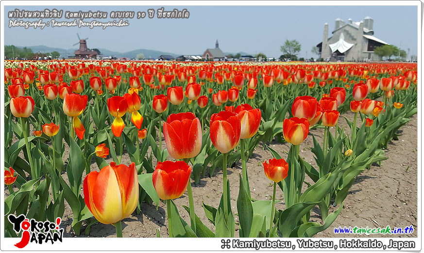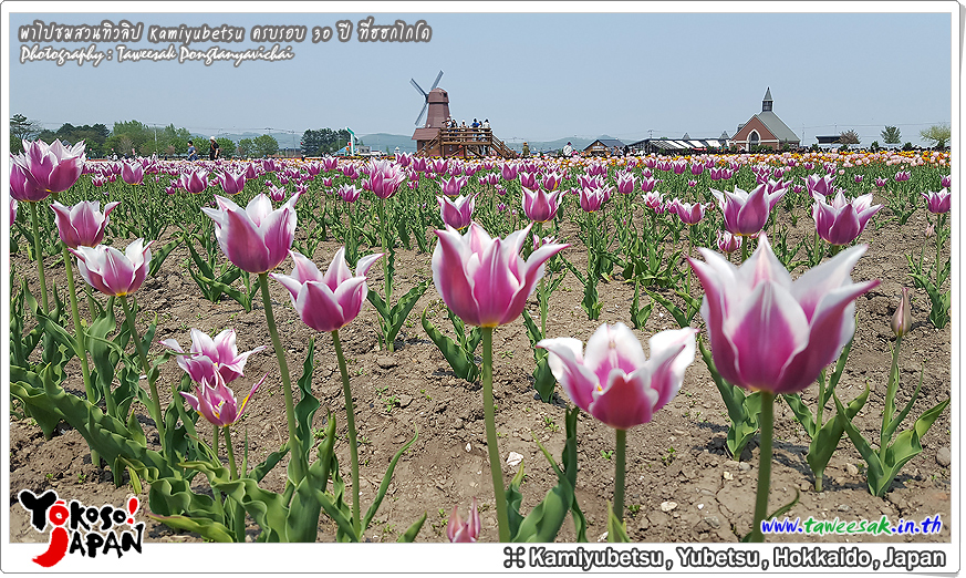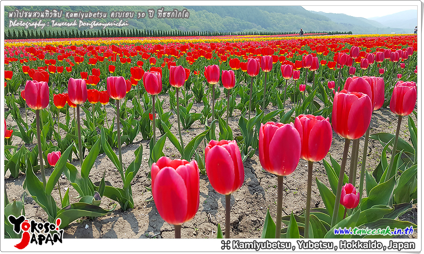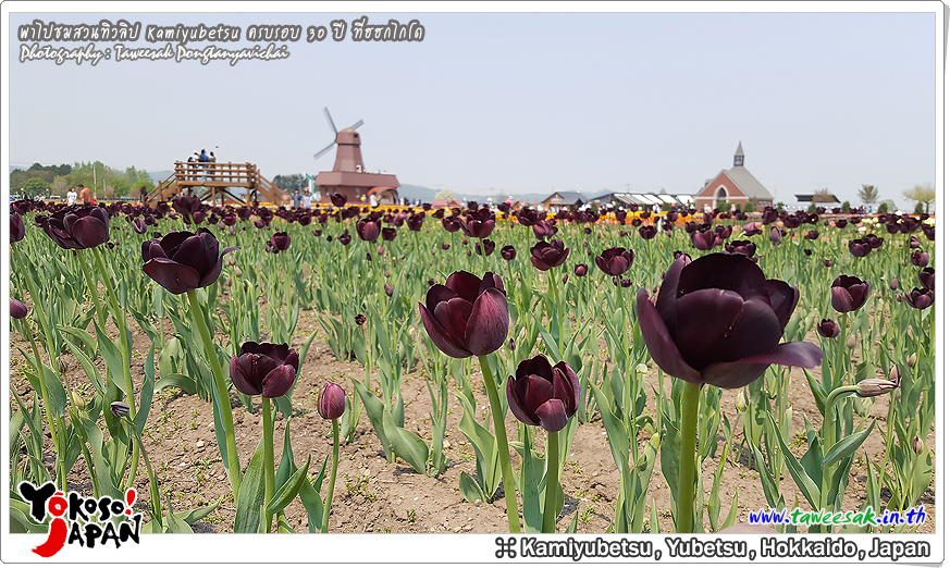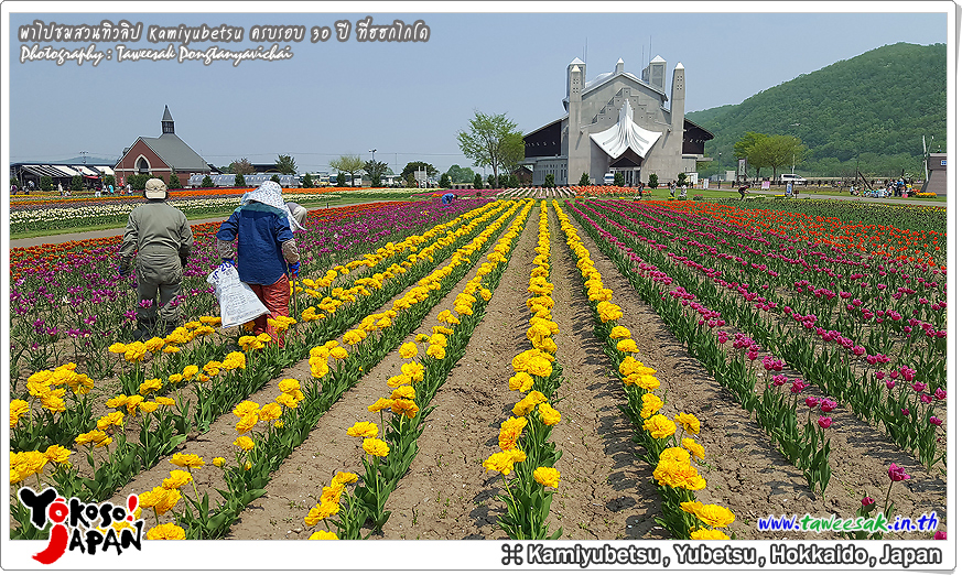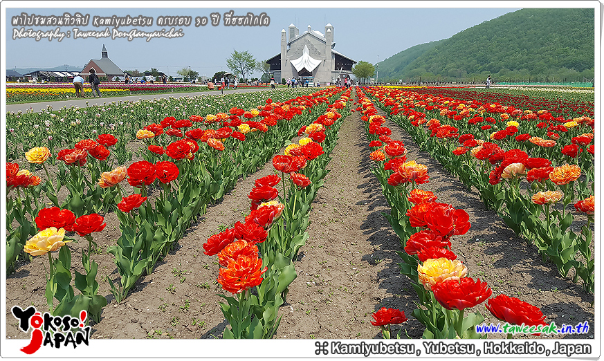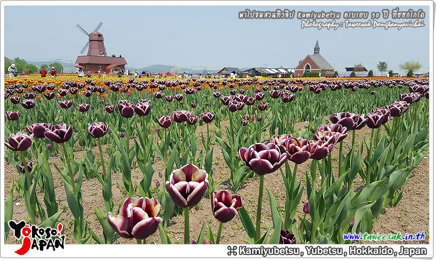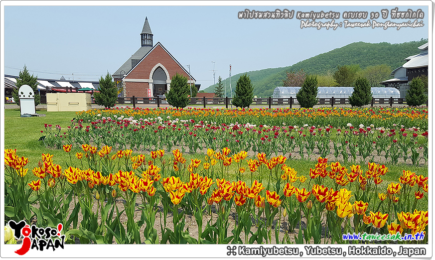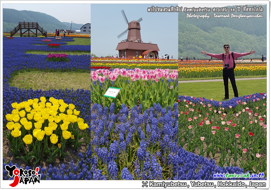 ยังท่องเที่ยวกันต่อในฤดูใบไม้ผลิที่เกาะฮอกไกโด ซึ่งฤดูนี้ช่างมีสีสัน โดยเฉพาะอย่างยิ่งที่ สวนทิวลิปคามิยูเบ็ทสุ (Kamiyubetsu Tulip Park) かみゆうべつチューリップ公園 ที่รวบรวมต้นทิวลิป (Tulip) หลากหลายสีสัน หลากหลายสายพันธุ์ อลังการงานสร้างจริงๆ