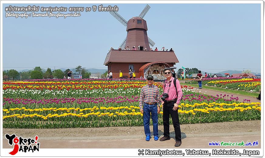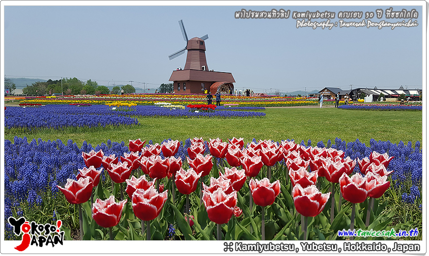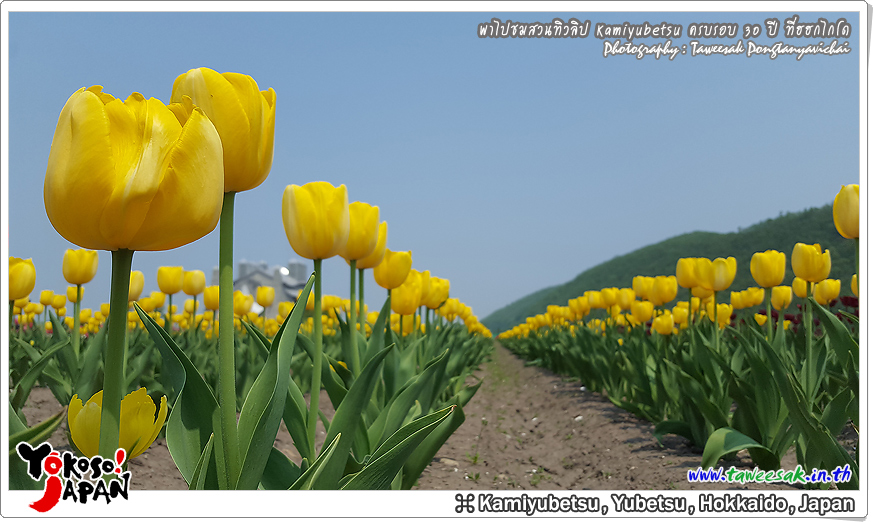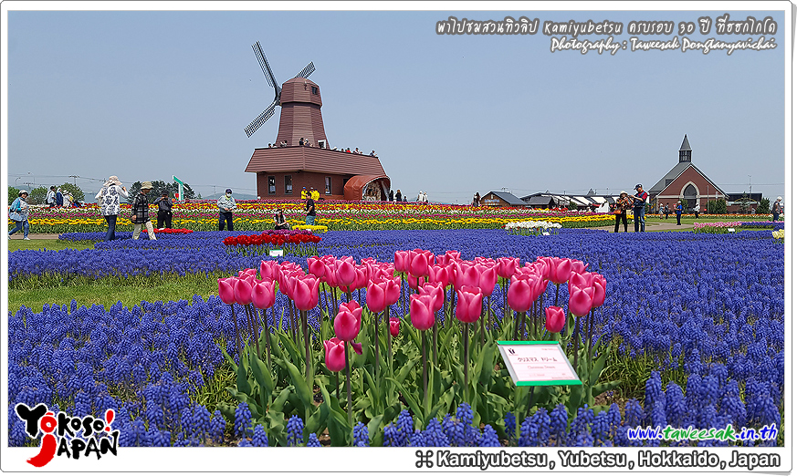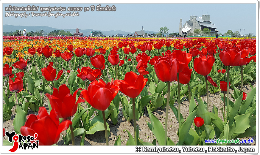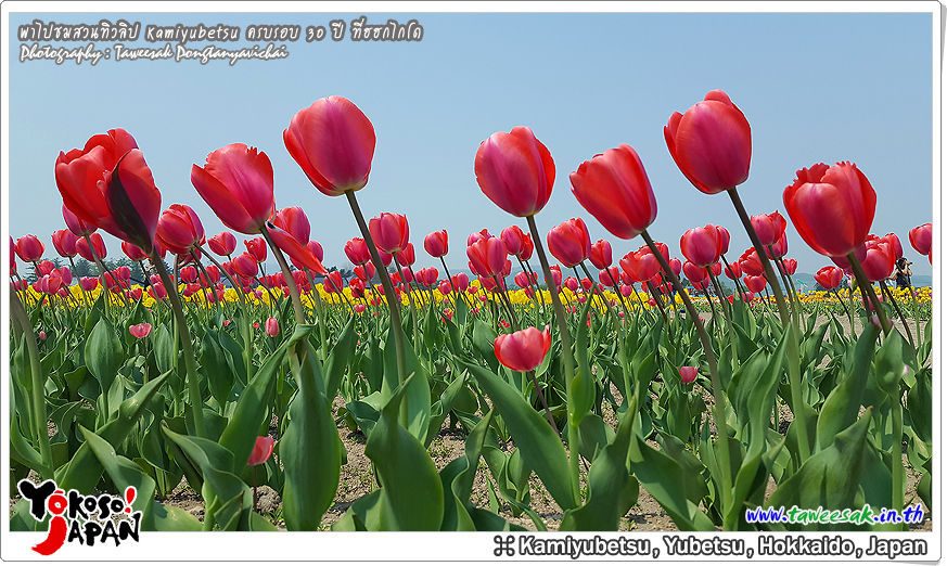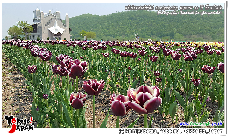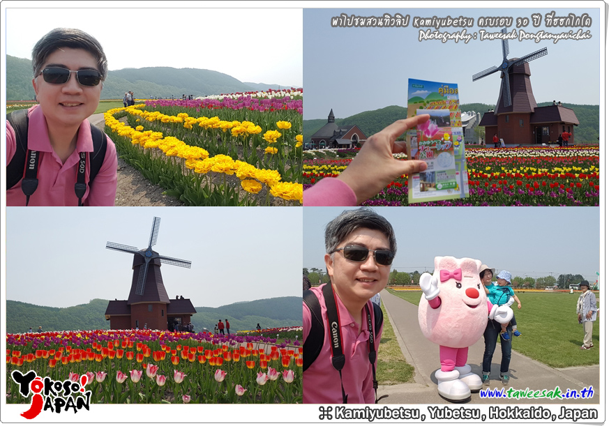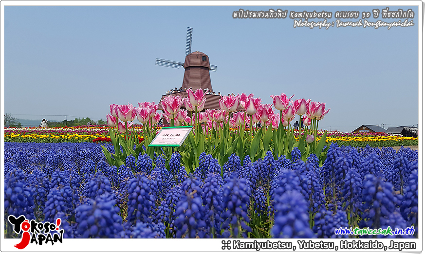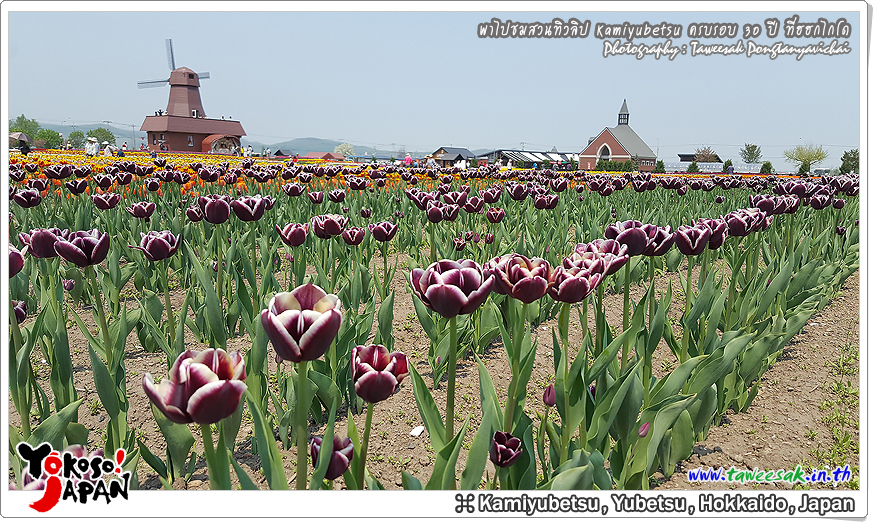 ยังท่องเที่ยวกันต่อในฤดูใบไม้ผลิที่เกาะฮอกไกโด ซึ่งฤดูนี้ช่างมีสีสัน โดยเฉพาะอย่างยิ่งที่ สวนทิวลิปคามิยูเบ็ทสุ (Kamiyubetsu Tulip Park) かみゆうべつチューリップ公園 ที่รวบรวมต้นทิวลิป (Tulip) หลากหลายสีสัน หลากหลายสายพันธุ์ อลังการงานสร้างจริงๆ