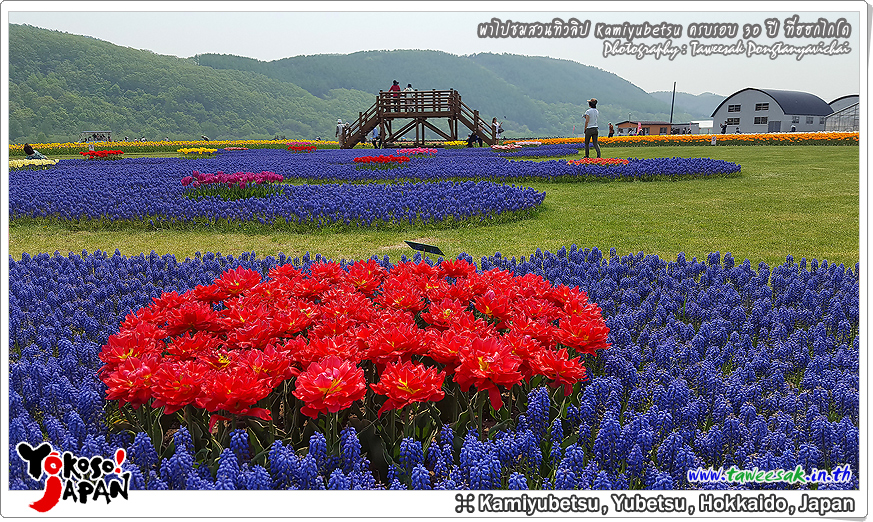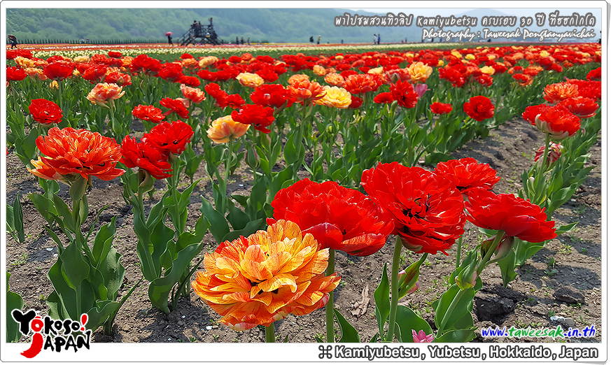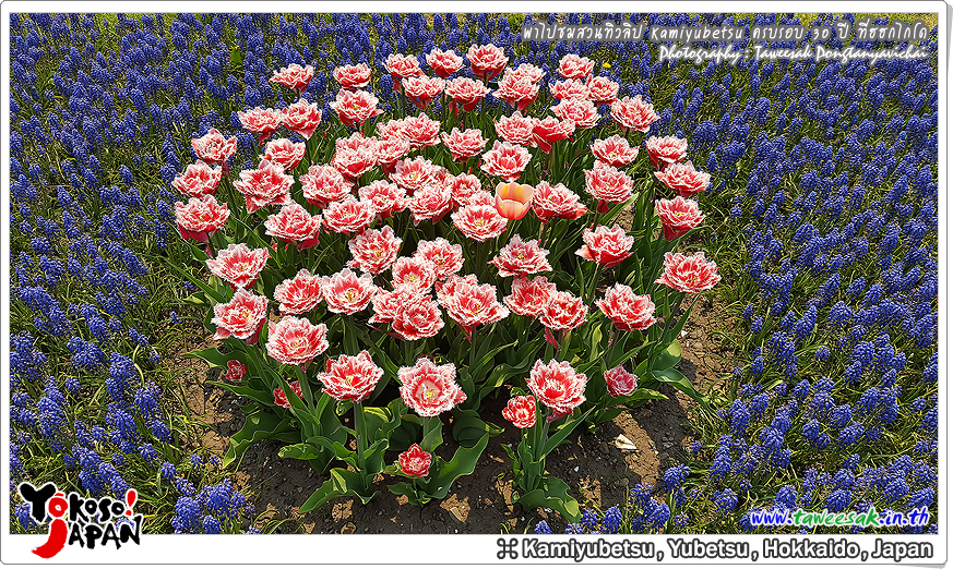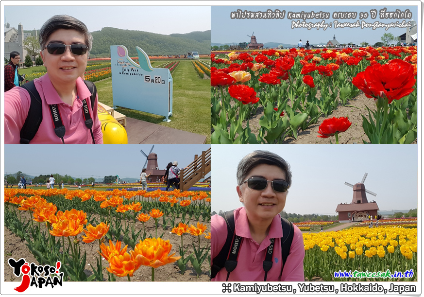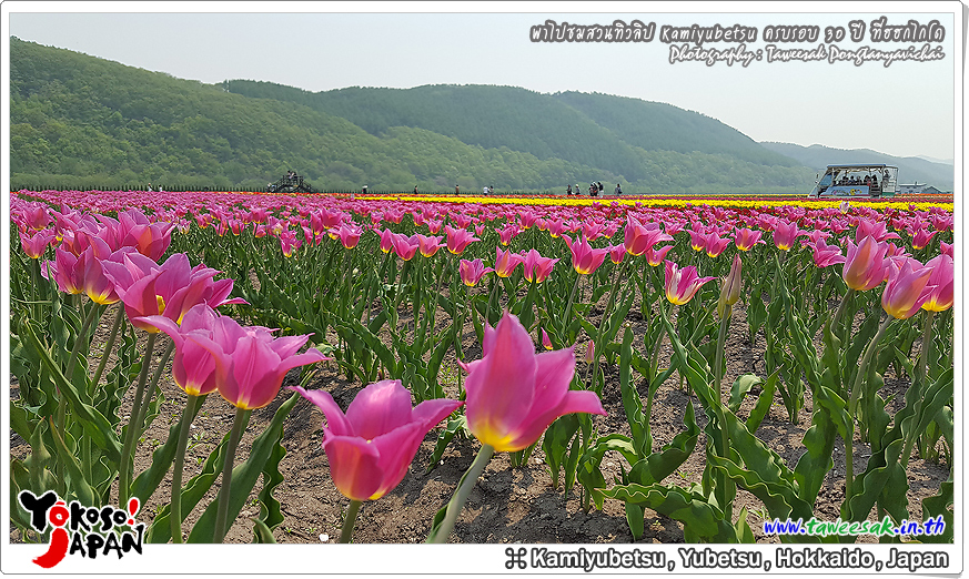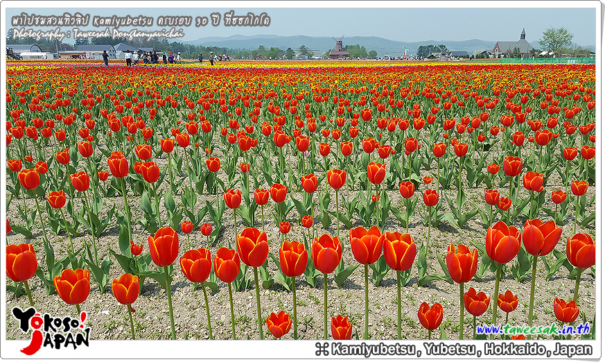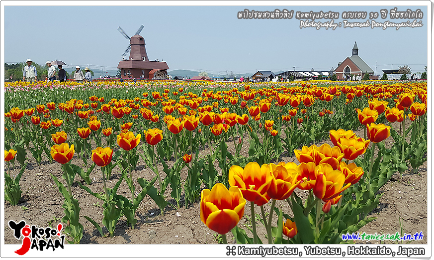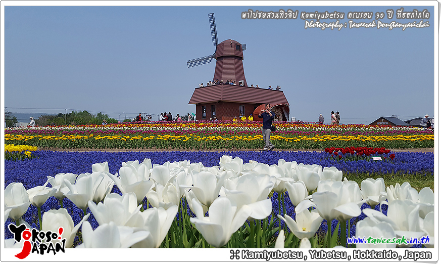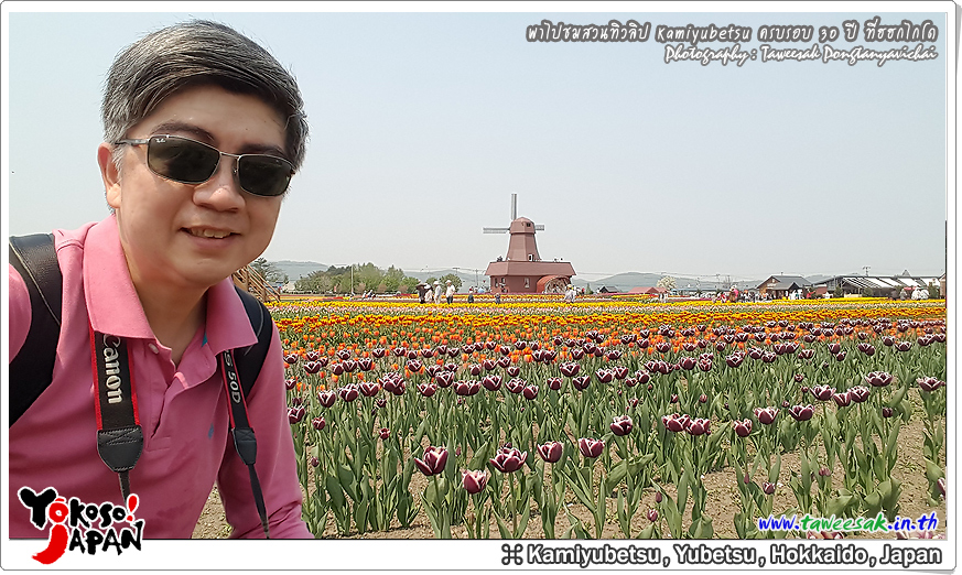 ยังท่องเที่ยวกันต่อในฤดูใบไม้ผลิที่เกาะฮอกไกโด ซึ่งฤดูนี้ช่างมีสีสัน โดยเฉพาะอย่างยิ่งที่ สวนทิวลิปคามิยูเบ็ทสุ (Kamiyubetsu Tulip Park) かみゆうべつチューリップ公園 ที่รวบรวมต้นทิวลิป (Tulip) หลากหลายสีสัน หลากหลายสายพันธุ์ อลังการงานสร้างจริงๆ