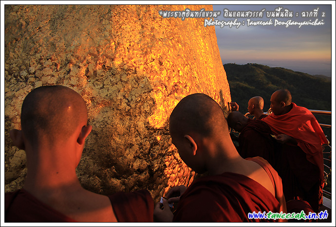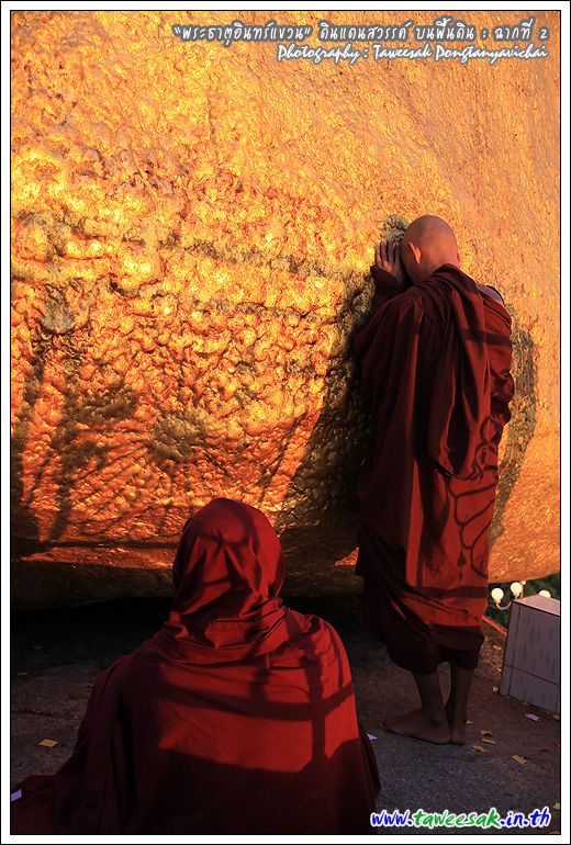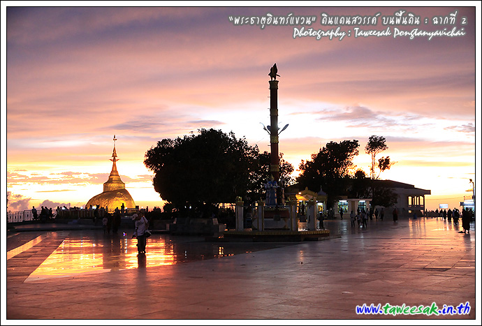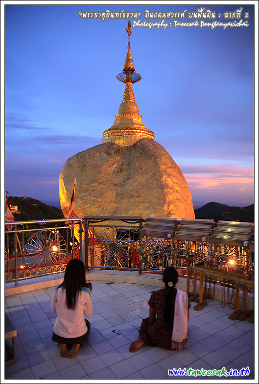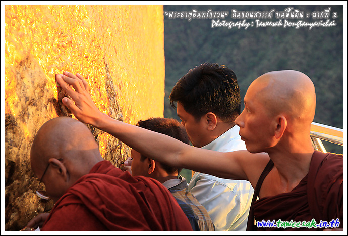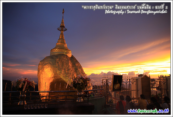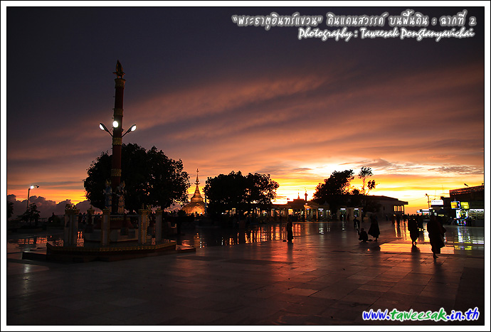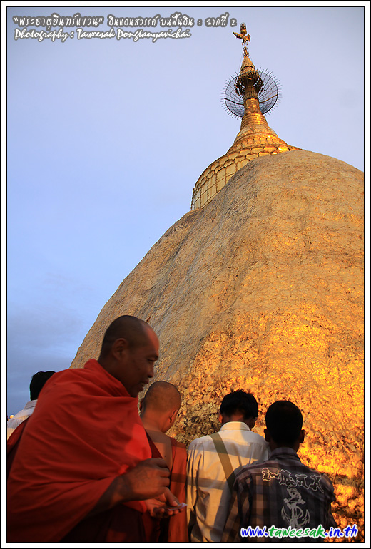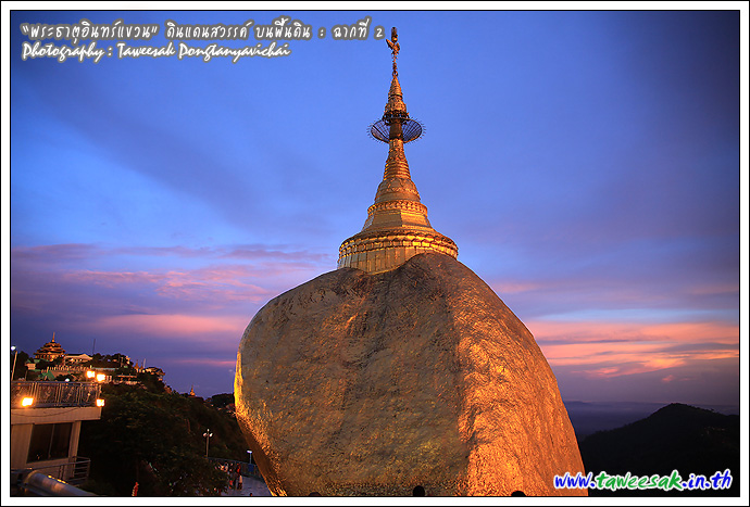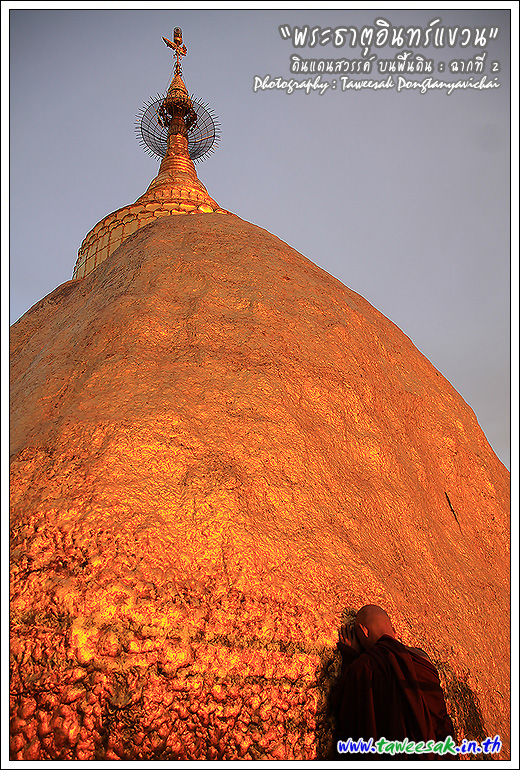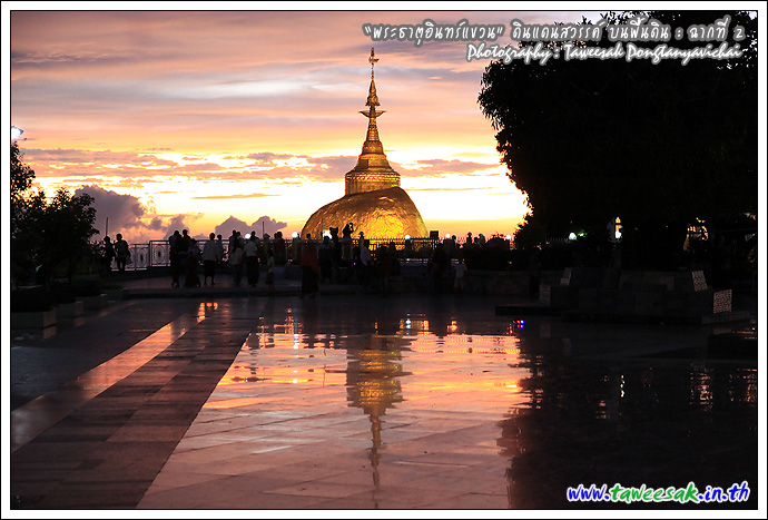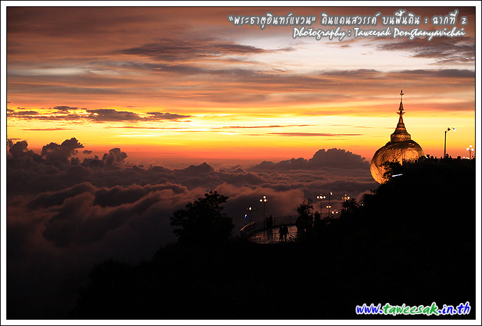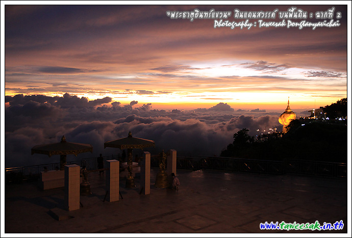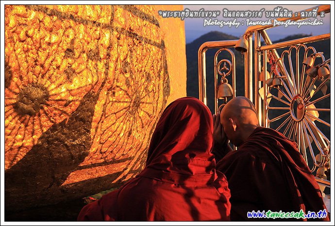 ไม่ทราบเหมือนกันว่า จะพบกับแสงสวยๆ แบบนี้ทุกวันหรือไม่ แต่คิดว่าคงเป็นเพราะตลอดวันนี้ มีฝนตกตลอดทาง ก่อนเดินทางขึ้นมาเมืองไจ้ก์โถ่ ซึ่งเป็นที่ตั้งของพระธาตุอินทร์แขวน อยู่บนยอดเขา Paung Laung เหนือระดับ น้ำทะเล 3,615 ฟุต ซึ่งมีส่วนทำให้มีแสงสวยๆ แบบนี้ ซึ่งมักสังเกตจากฟ้าหลังฝน มักจะสวยงามเสมอ