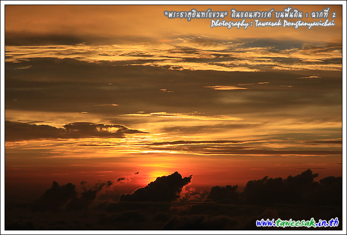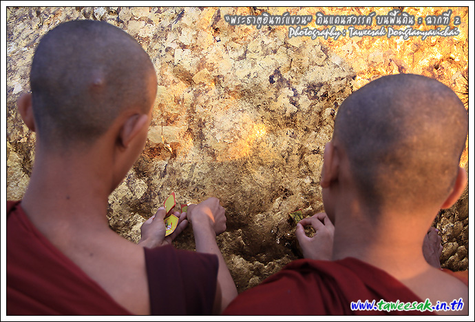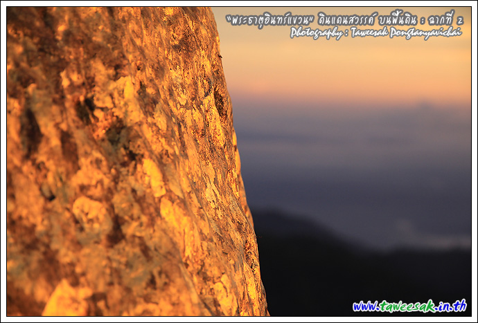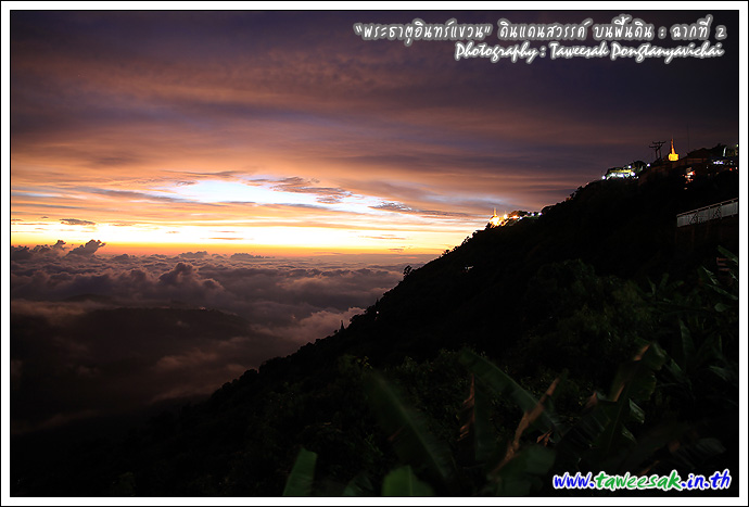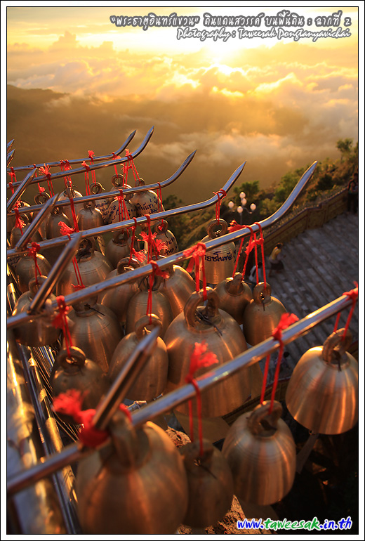 แม้ว่าจะใกล้ค่ำเข้าไปทุกที แต่แสงสุดท้ายของวันนี้ ยังทอแสงสีทอง สาดส่ององค์ "พระธาตุอินทร์แขวน" ยิ่งทำให้เห็นสีทองเหลืองอร่าม น่าอัศจรรย์ด้วยแสงสีจากธรรมชาติ